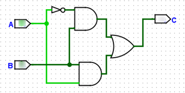 Яке значення отримаємо на виході C схеми, якщо A=1 та B=0 ?