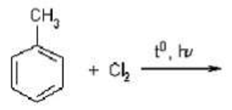 За вказаних умов взаємодія толуолу з хлором призводить до утворення: