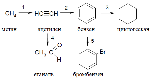 Для схеми перетворень реакція електрофільного заміщення проходить на стадії: