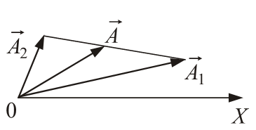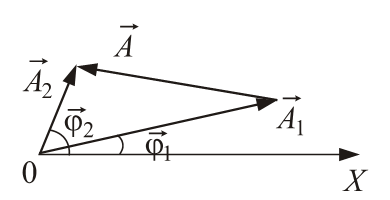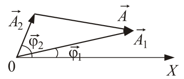 виконано додавання двох гармонічних коливань однакової частоти, які напрямлені