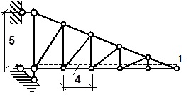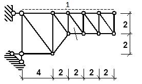 Визначити ординату лінії впливу зусилля у відміченому стержні під вузлом 1.