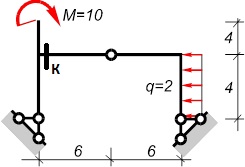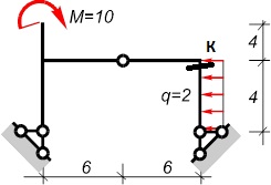 Чому дорівнює момент у перерізі "К" (додатнім вважати момент, який розтягує праві волокна)?