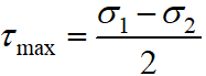 Максимальне дотичне напруження при об’ємному напруженому стані має вигляд …