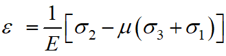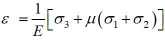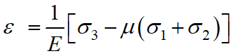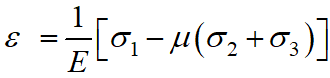 При дії головних напружень у виділеному з тіла безмежно малому елементі виникатимуть в напрямку цих напружень деформації , які визначаються із узагальненого закону Гука. Яка з них буде