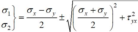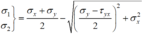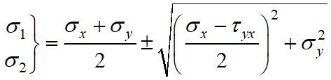 Величина головних напружень для плоского напруженого стану знаходиться з виразу: