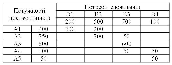 Розв’язуючи транспортну задачу, вибрали початковий опорний план методом північно-західного кута:
