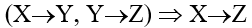 Яка з формул описує властивість транзитивності функціональних залежностей?