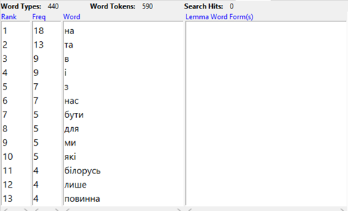 Antconc зображена на скріншоті?Intuition has nothing to deal with corpora