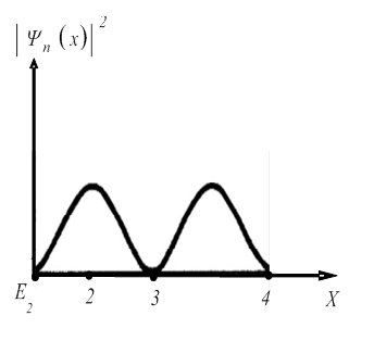 В якій точці одновимірної потенціальної «ями» з безмежно високими стінками може перебувати частинка у квантовому стані з n=2