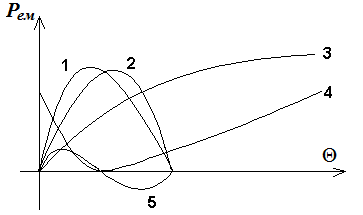Яка з наведених на рисунку залежностей відповідає кутовій характеристиці неявнополюсного синхронного