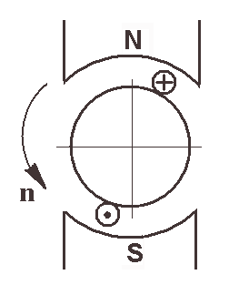 В якому режимі працює машина постійного струму, поперечний переріз якої схематично показаний на рисунку?
