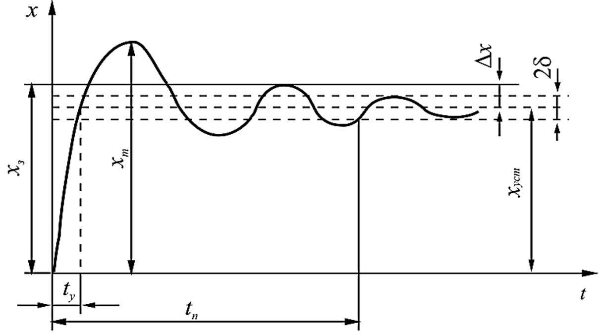 Символами при дослідженні перехідних процесів  sigma equals fraction numerator x subscript m a x end subscript minus x subscript у с т end subscript over denominator x subscript у с т end subscript end fraction позначають :