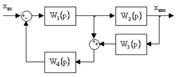 Функція передачі W(p) системи, структурна схема якої показана на рисунку, визначається за формулою:
