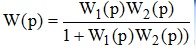 Функція передачі W(p) системи, структурна схема якої показана на рисунку, визначається за формулою: