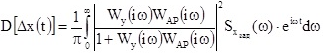 За якою формулою визначається дисперсія похибки регулювання Δx(t) системи регулювання, якщо на вхід системи діє стаціонарний випадковий процес хзад(t), a z(t)=0 ?