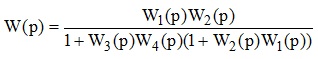 Функція передачі W(p) системи, структурна схема якої показана на рисунку, визначається за формулою:
