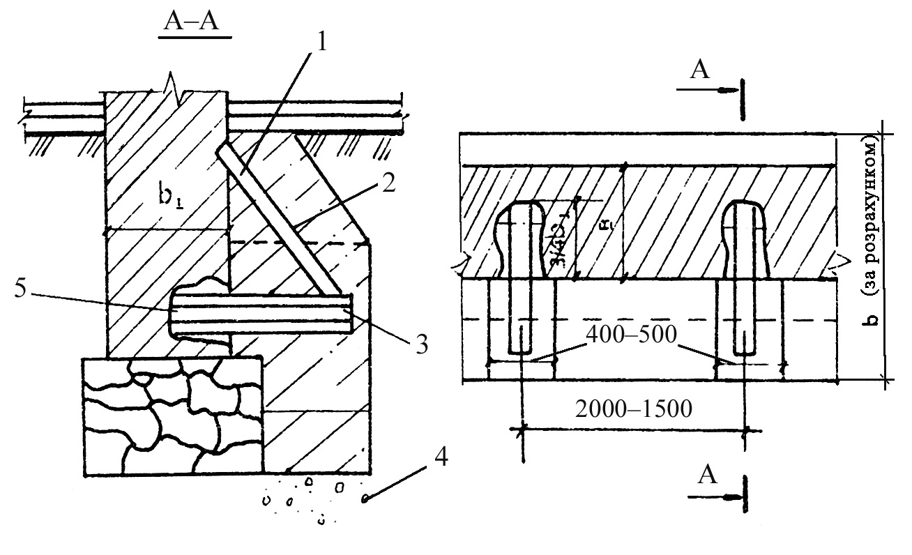 Вказати основні конструктивні елементи при підсиленні кам'яних стін залізобетонною обоймою