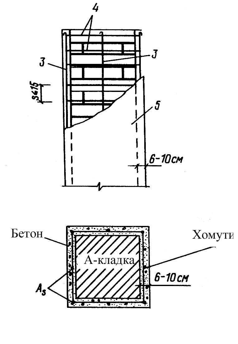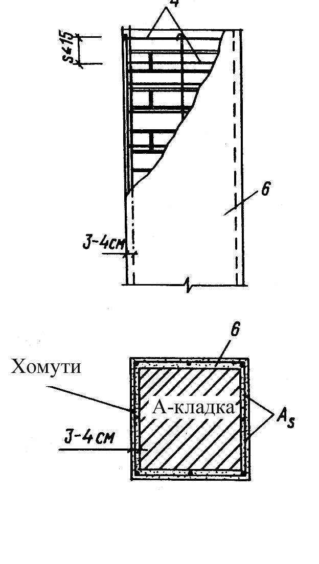 На даному рисунку зображена схема підсилення цегляних стовпів обоймами: