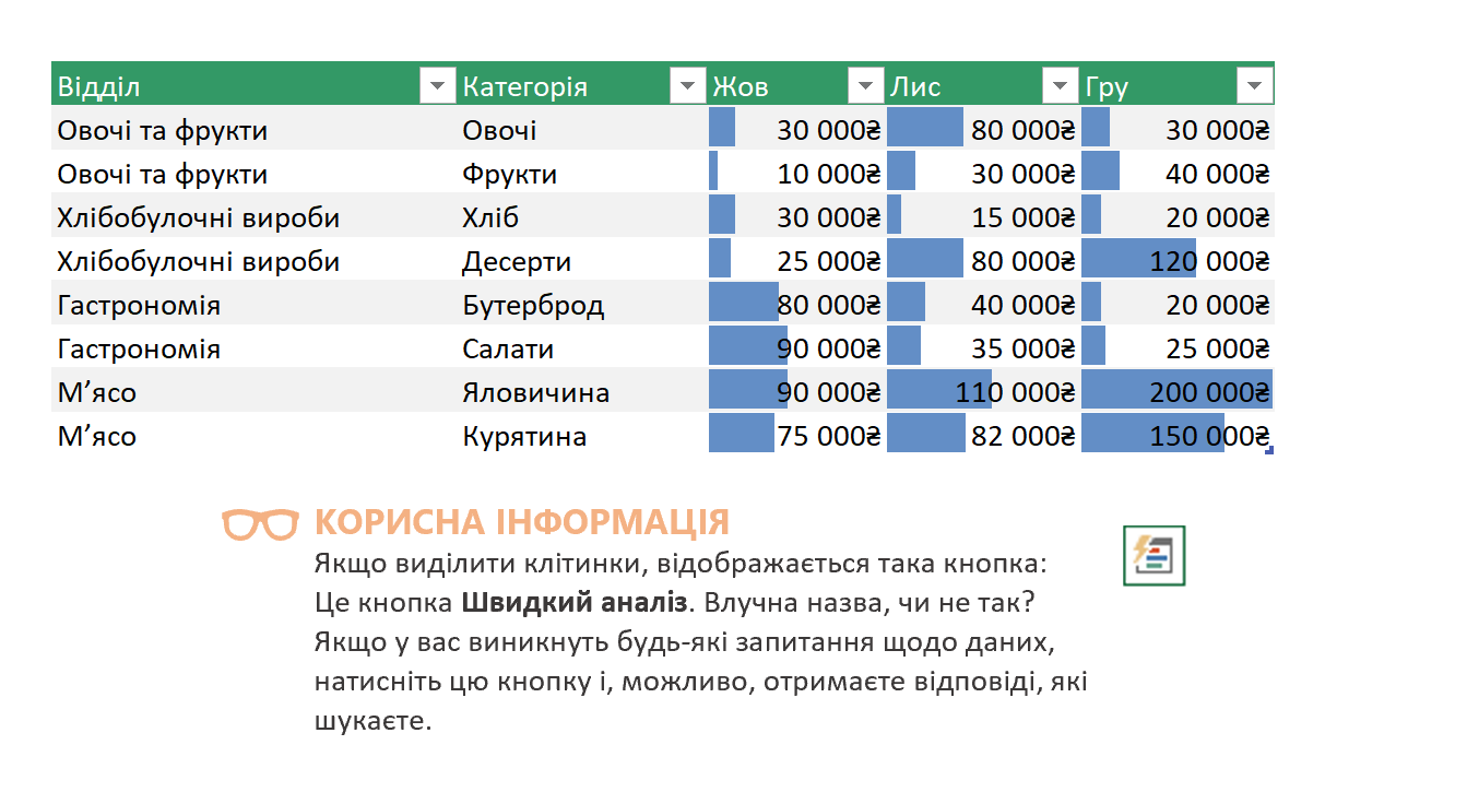Вкажіть , за допомогою якого інструменту швидкого аналізу було отримано наступний результат (див практична №6)