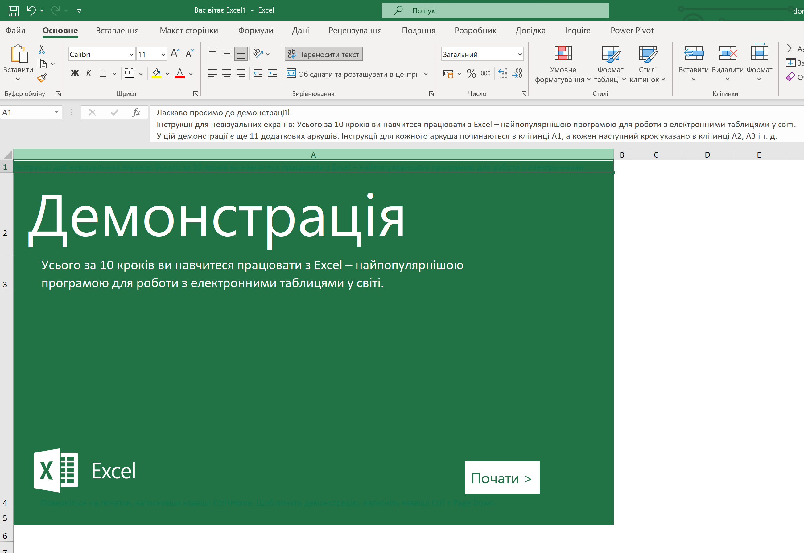 Створіть новий файл за шаблоном "Вас вітає Ексель!" (ви його тільки що завантажили).