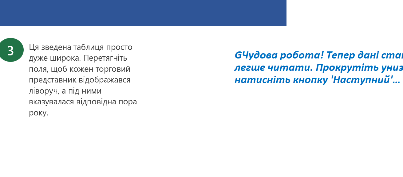 Аркуш 23 практичної роботи №9 містить практику . Вам потрібно правильно за завданням розташувати поля рядків. Вкажіть скільки одиниць товару продано Оксаною взимку? (однією цифрою)