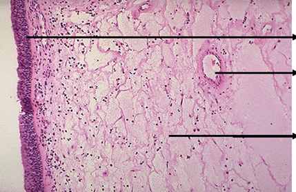 A 17-year-old girl who has a history of asthma and chronic allergic rhinitis presents with a 12-month history of persistent nasal congestion, rhinorrhea, facial pain, and headache. Biopsy reveals a loose edematous stroma, and mucus glands covered by respiratory epithelium with inflammatory cell infiltrate with a predominance of eosinophils.