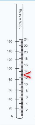 The haemoglobin of a given blood sample measured by Sahlis method is indicated by an arrow