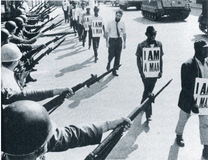 Passeata em Memphis, Tennessee, EUA, 1968. Nos cartazes, a frase “Eu sou um homem”