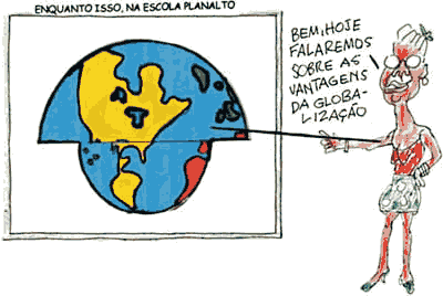 A charge acima foi publicada no site do escritor, dramaturgo e humorista Millôr Fernandes, Para o autor do desenho, a globalização é um processo: