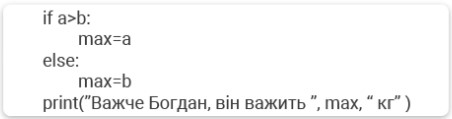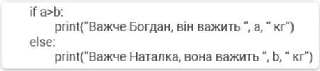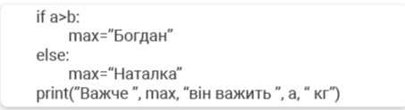 Вибрати фрагменти програм, що відображатимуть ім'я та вагу важчої дитини.