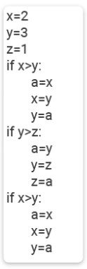 Встановити у правильному порядку послідовність команд для знаходження більшого та меншого числа.